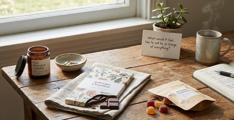While daily microdosing helps with gradual perspective shifts, some women find that occasional higher doses with clear intention create breakthrough moments around control and mental load. A guided session where you explore “What would it feel like to not be in charge of everything?” can surface deep insights.